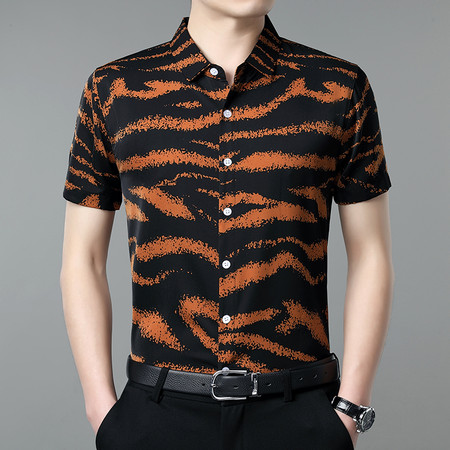 豪琪男装&夏季爆款小立领2两粒扣打孔工艺短袖8266款(老钱风)