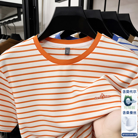 栈歌&6195莫代尔桑蚕丝螺纹圆领T恤手拍图
